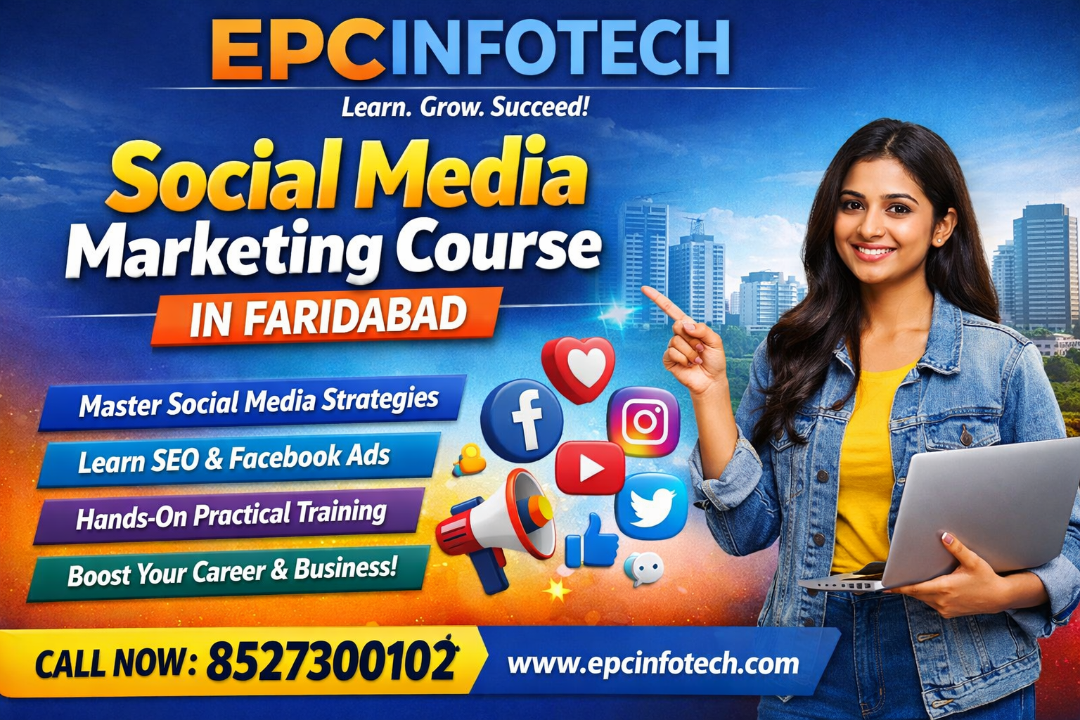Join the best social media marketing course in Faridabad offered by EPC Infotech. This program provides expert-led training with a strong focus on SEO classes, Instagram marketing strategies, and career-focused certification to help learners become industry-ready professionals.
